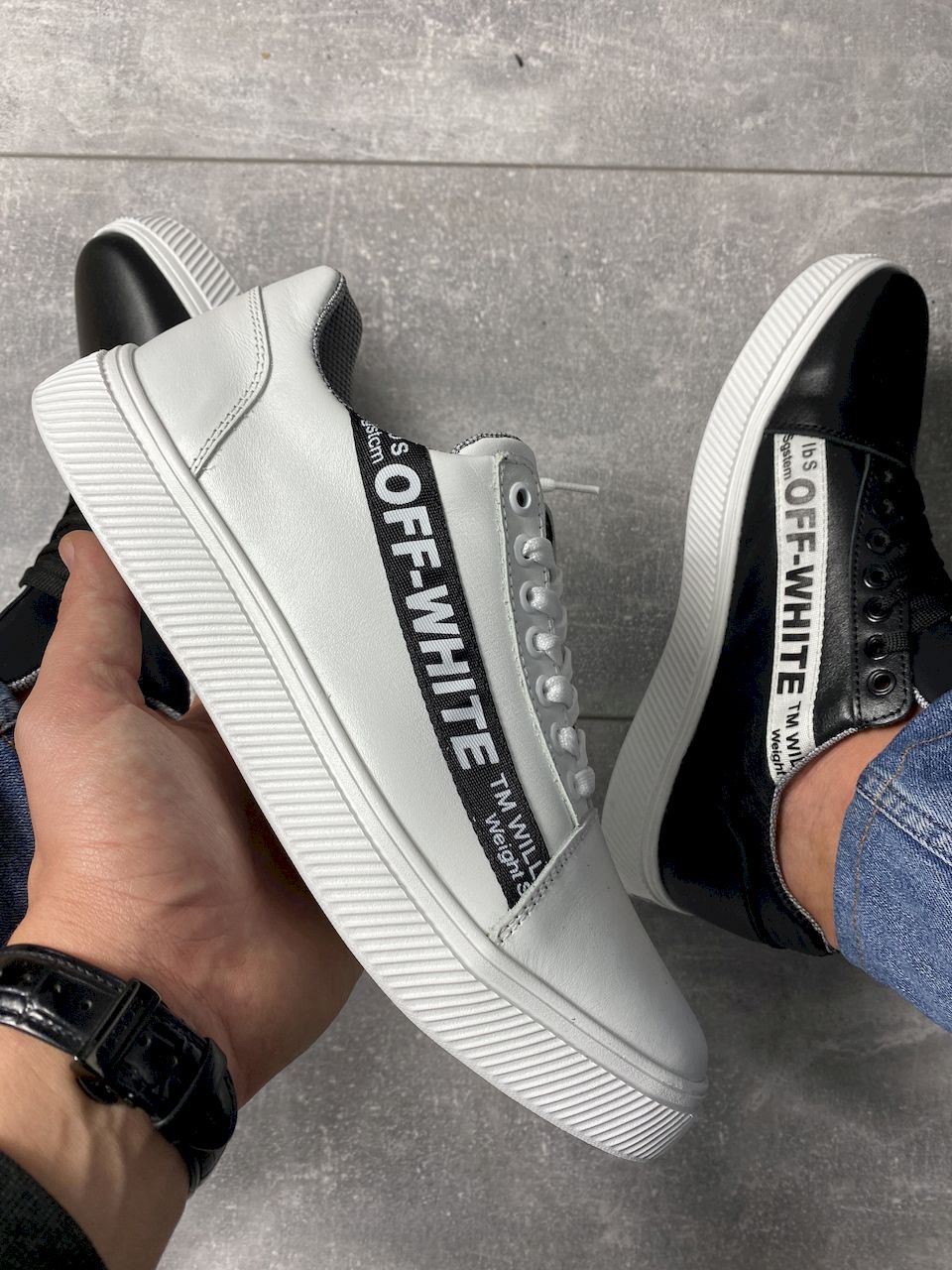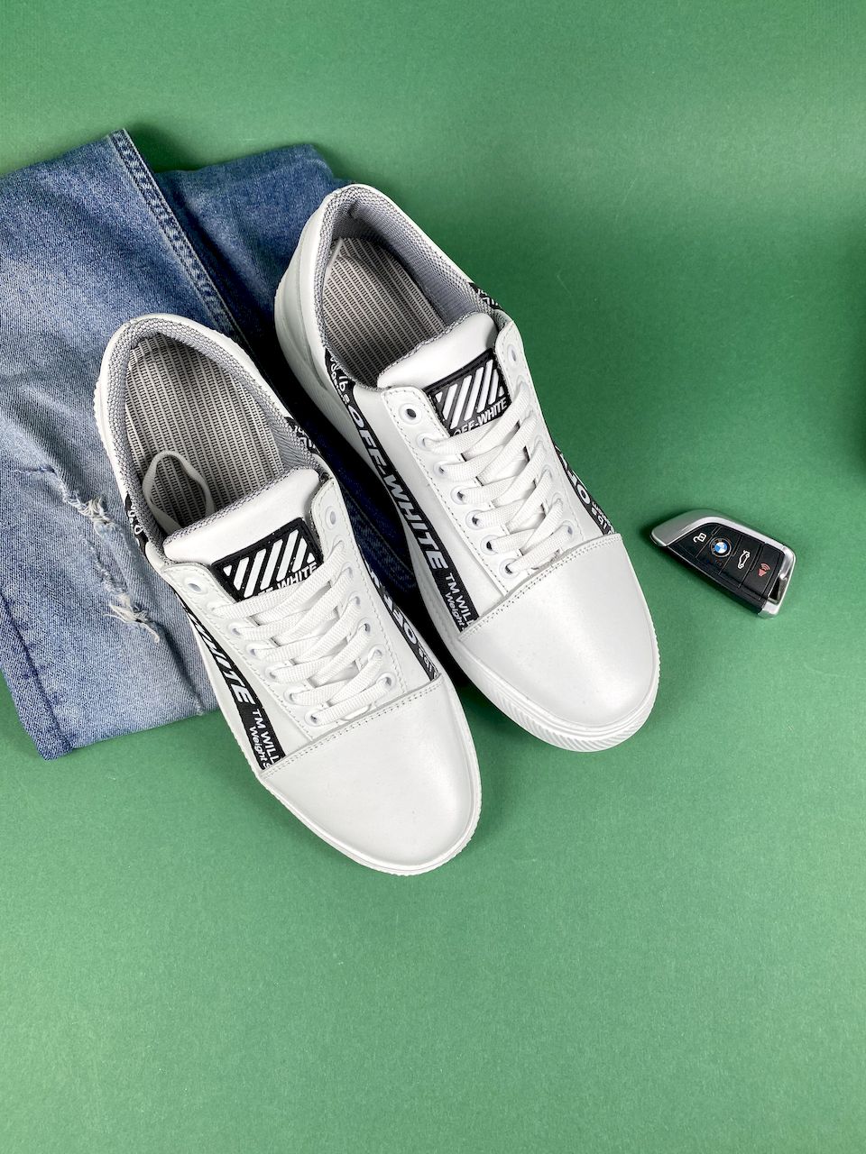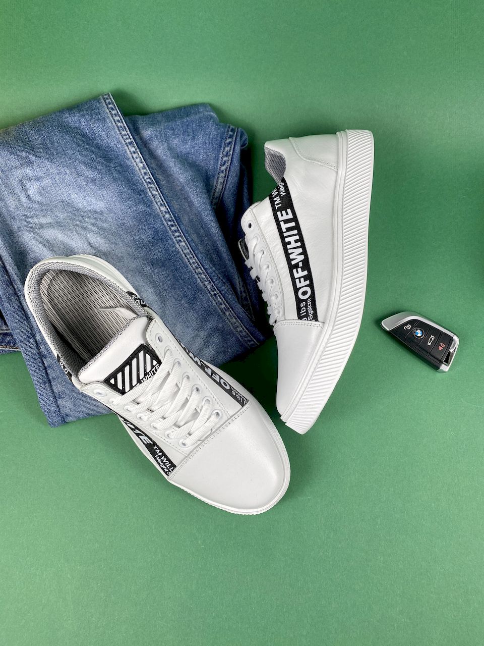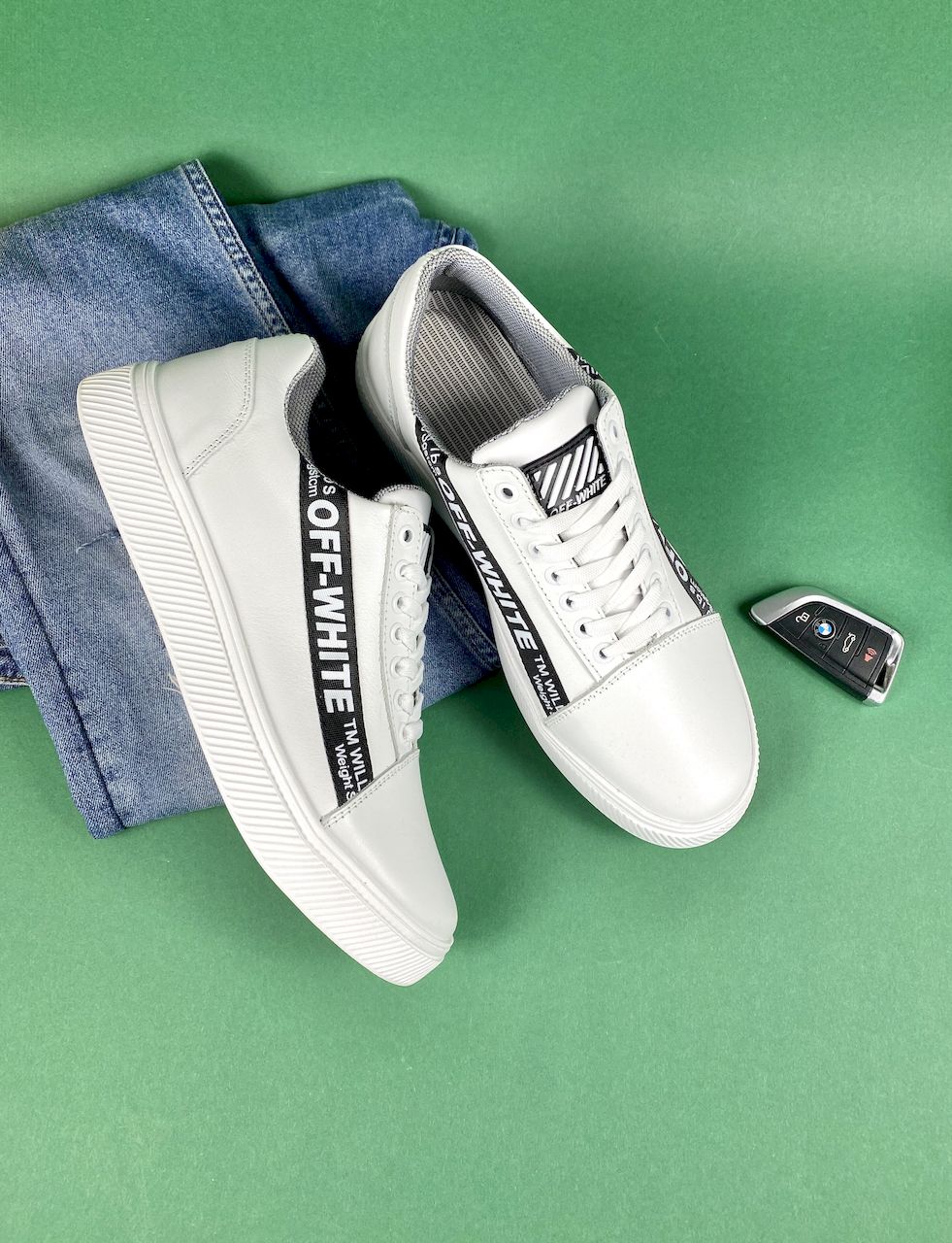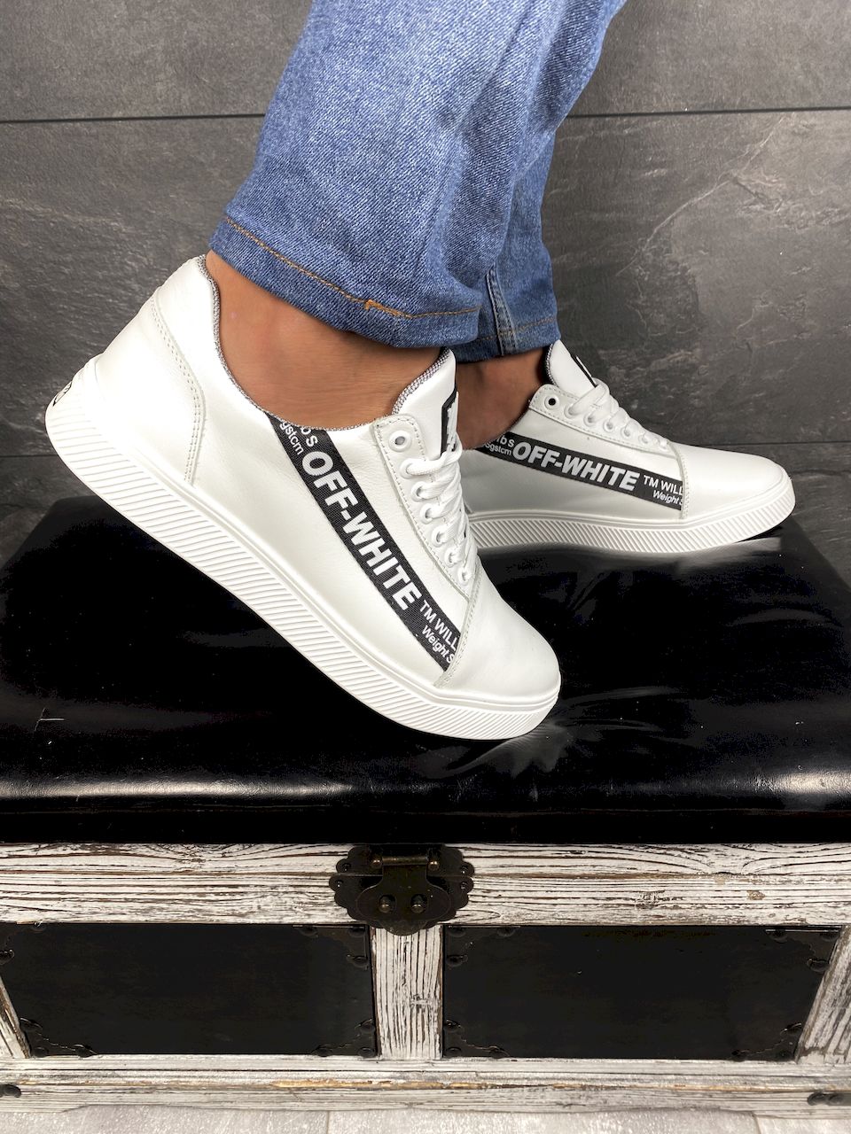Кожаная обувь станет прекрасным решением для изменчивой весенней и осеней погоды. Подошва изготовлена из материала высокого качества, не скользит на различных поверхностях. Белый цвет гарантирует, что обувь будет «изюминкой» в гардеробе. Если хотите купить белые кроссовки из кожи, просто выберите размер и оформите покупку, либо позвоните менеджеру магазина.