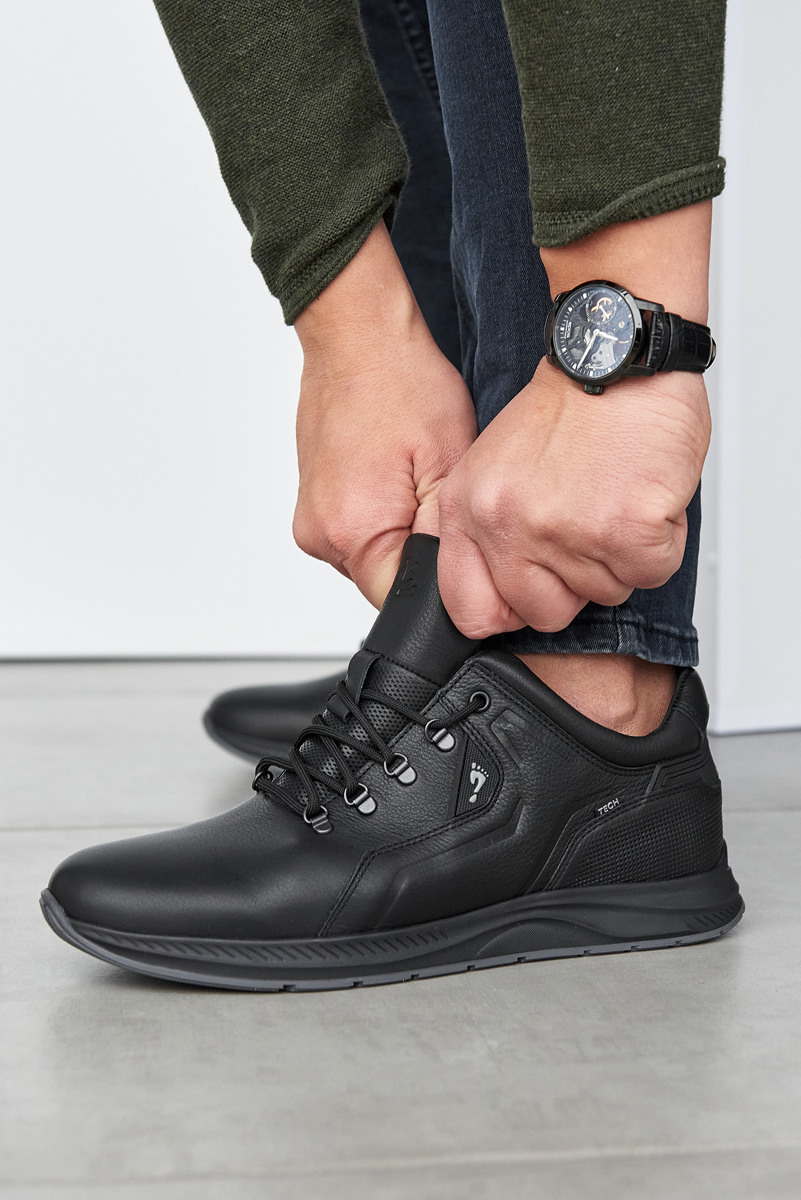 Черные мужские кожаные кроссовки позволят получить полный контроль над движениями и обеспечит чувство свободы. Это стильная обувь для мужчин, которая подойдет под спортивную одежду и casual, обеспечивая чувство легкости шага. Необязательно быть спортсменом, чтобы купить мужские кожаные кроссовки – они смогут дополнить стиль городского жителя и станут прекрасным решением для активного отдыха на природе.